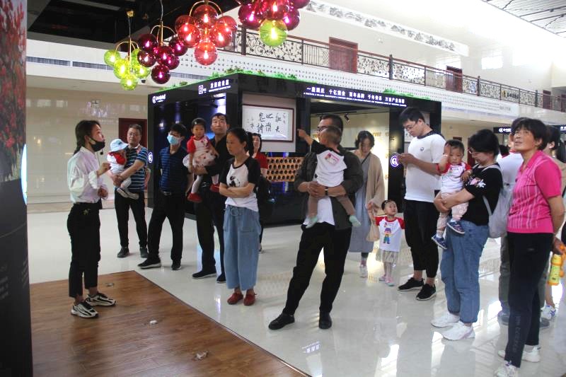 活動第一天的整個參觀流程為:接待中心集合→觀光車統一調度→綜合辦公樓場館講解→音樂酒窖參觀→中式品酒室品鑒→紅酒瓶現場涂鴉→君和農業園栽苗體驗,整個活動從上午1000開始,原計劃1200結束的流程一直持續到了下午14:00。家長們對酒莊的設施設備、規劃布局和服務細節給予了很高的贊許,并對紅酒的歷史和品鑒表現出了濃厚的興趣。