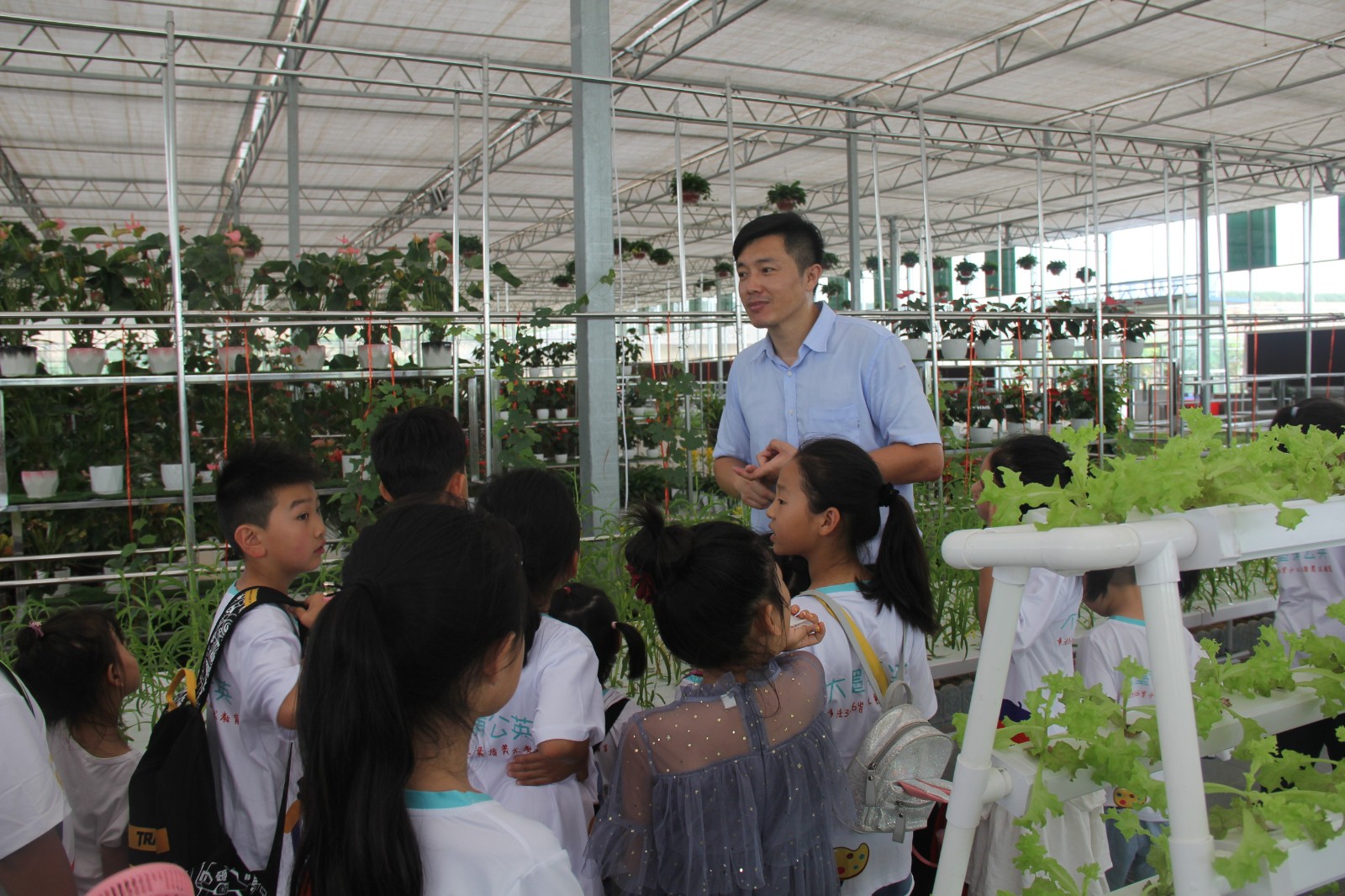 在這里,孩子們的好奇心和求知欲被徹底的激發出來,聽工作人員講解無土栽培,了解無土栽培的方法甚至于可以用小手親自去體驗一把移植和播種的快樂。一節生動的勞動體驗課,讓孩子們對現代農業有了更直接的了解。