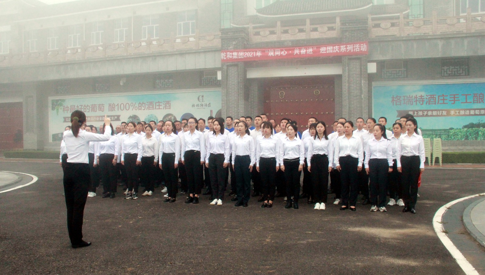 在國慶節(jié)來臨之際,為隆重熱烈地慶祝中華人民共和國成立72周年,進一步加強公司員工的團隊凝聚力,弘揚和培育民族精神,激發(fā)愛國主義情感,于9月30日早8點在格瑞特酒莊廣場開展“ 筑同心·共奮進 ”迎國慶系列活動。格瑞特莊園全體人員參加。