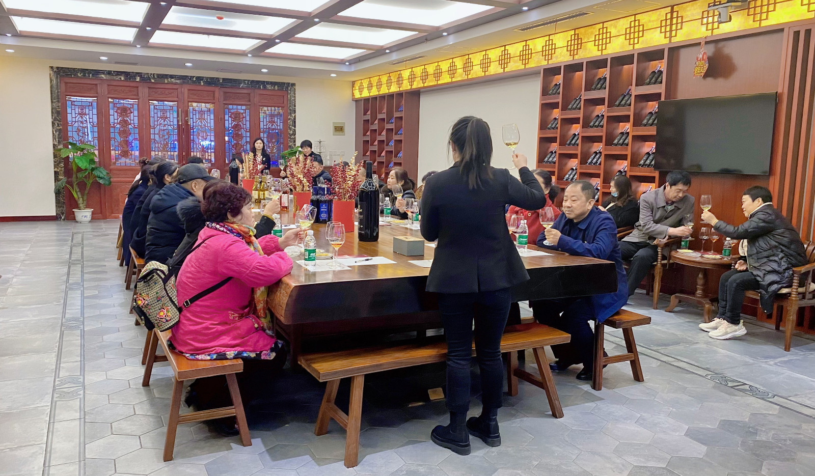 參觀完地下酒窖,進入中式品鑒室。品味紅酒,是一種享受,持杯、觀色、聞香、品嘗都有一系列嚴謹的規則,在專業品鑒師的講解下,更深入地去品味紅酒。