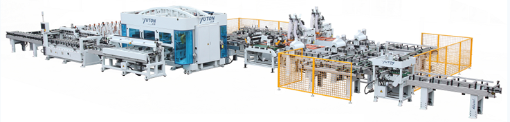 1.自動進出料壓機 2.掃描臺I 3.數控門扇四邊鋸 4.周轉庫 5.封邊進料臺 6.龍門輸送機 7.直線封邊機